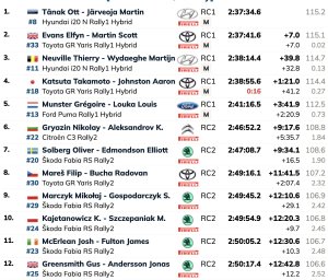 Tänak consiguió su segunda victoria del año y, al hacerlo, ha establecido un emocionante final entre él y su compañero de equipo en el Hyundai i20 N Rally1 HYBRID, Thierry Neuville, para el FORUM8 Rallye de Japón del próximo mes. Neuville, que había estado haciendo lo suficiente para hacerse con su primer título de pilotos antes de un costoso trompo el sábado por la mañana, vio recortado su liderato en el campeonato y terminó el rallye por detrás de Elfyn Evans en tercera posición.