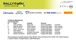 Con todo por decidir, la Rally & You Bp Ultimate Plus Car Cup que organiza Sports & You Canarias aterriza en el 51 Rally de Maspalomas para empezar a clarificar la lucha por el título. La prueba grancanaria es la penúltima del calendario, un certamen que concluirá dentro de un mes con motivo del Rally Isla de Lanzarote.