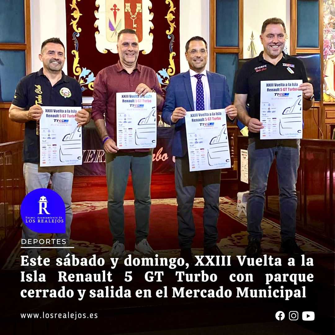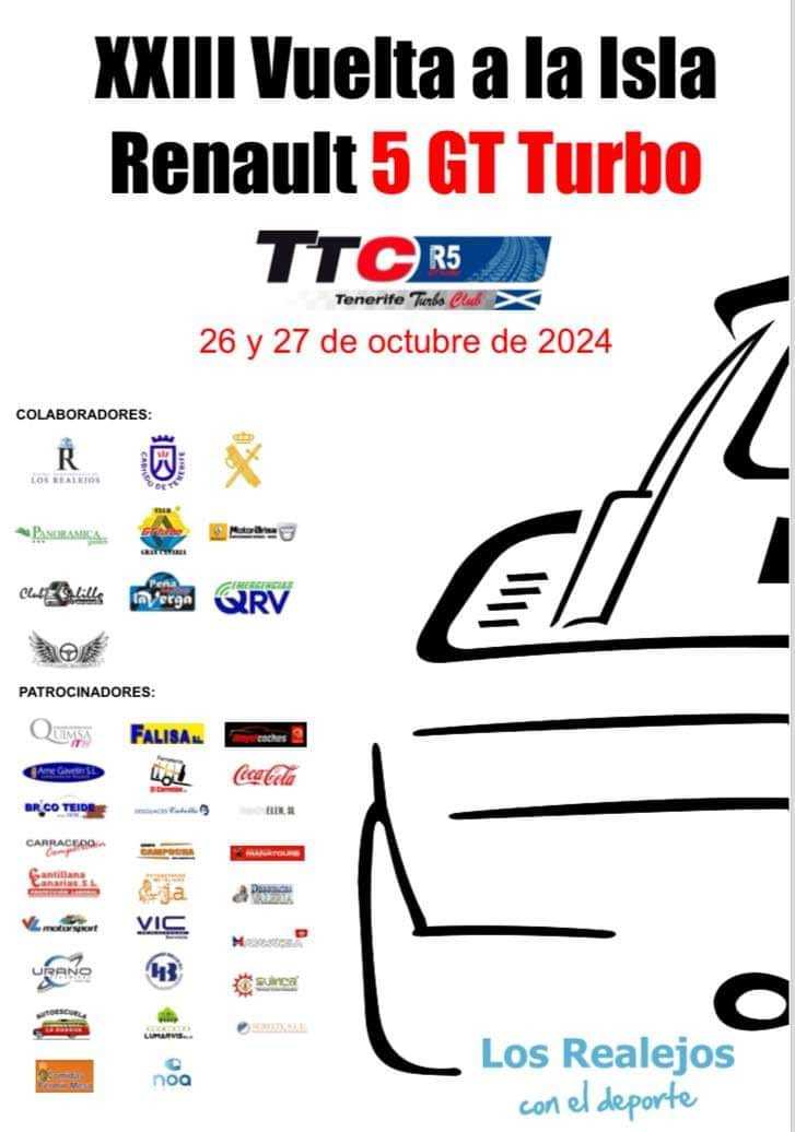 Se trata de la XXIII edición de la Vuelta a la Isla Renault 5 GT Turbo, que organiza el Tenerifeturbo Club, y que tendrá lugar este sábado 26 y domingo 28 de octubre con parque cerrado y salida en la explanada del Mercado Municipal de esta localidad.