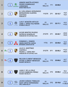 Sextos son los dos veces campeones de Las Palmas de Rallys de Asfalto, Julio Martínez y Pedro Vera (Porsche 997 GT3 Cup Rally 2010), a 10.3 del cuarto lugar, seguido de los hermanos Climent, séptimos y primeros de la Rally Cup, seguidos a 8.4 de Juan Carlos de La cruz y Aitor Cambeiro (Peugeot 208 Rally4), octavos de la general y segundos de la Rally Cup, siendo novenos de la general y terceros de esta copa Javier Cañada y Adsy Ortiz (Opel Corsa Rally4).