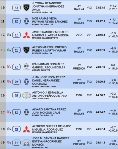 Yoday Betancort y Jonathan Hernández (Peugeot 208 Rally4) cierran el top 10 y como cuarto de la Rally Cup, siendo undécimos y primeros de la Clio Trophy Canarias Noé Armas y Ruymán Reyes, que tienen todo de cara para llevarse el título en la despedida de su Renault Clio Rally5.