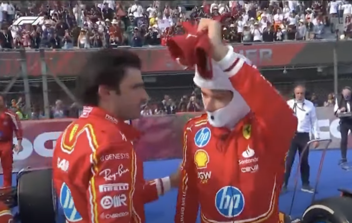 Feo gesto del piloto monegasco Charles Leclerc, que nada más bajarse de su monoplaza ignora y ni felicita a su compañero de equipo en Ferrari, Carlos Sainz, tras su triunfo en el Gran Premio de México.