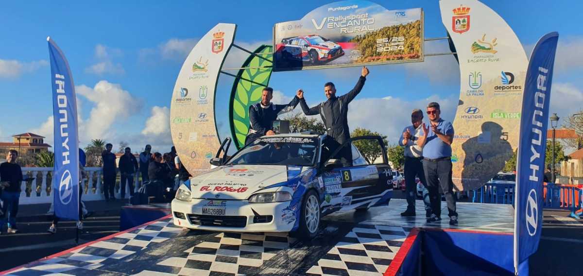 Quinta posición en el Rallysprint Encanto Rural 2024 para los palmeros Ayoze Almeida y Rubén Feliciano con el Honda Civic VTI, unidad con la que en 2023 se alzaban con el triunfo en el Campeonato Insular de La Palma de Rallyes de Asfalto, entorchado que cedían a la los ganadores del Rallysprint, Alejandro Afonso y Ariday Bonilla (Skoda Fabia R5).