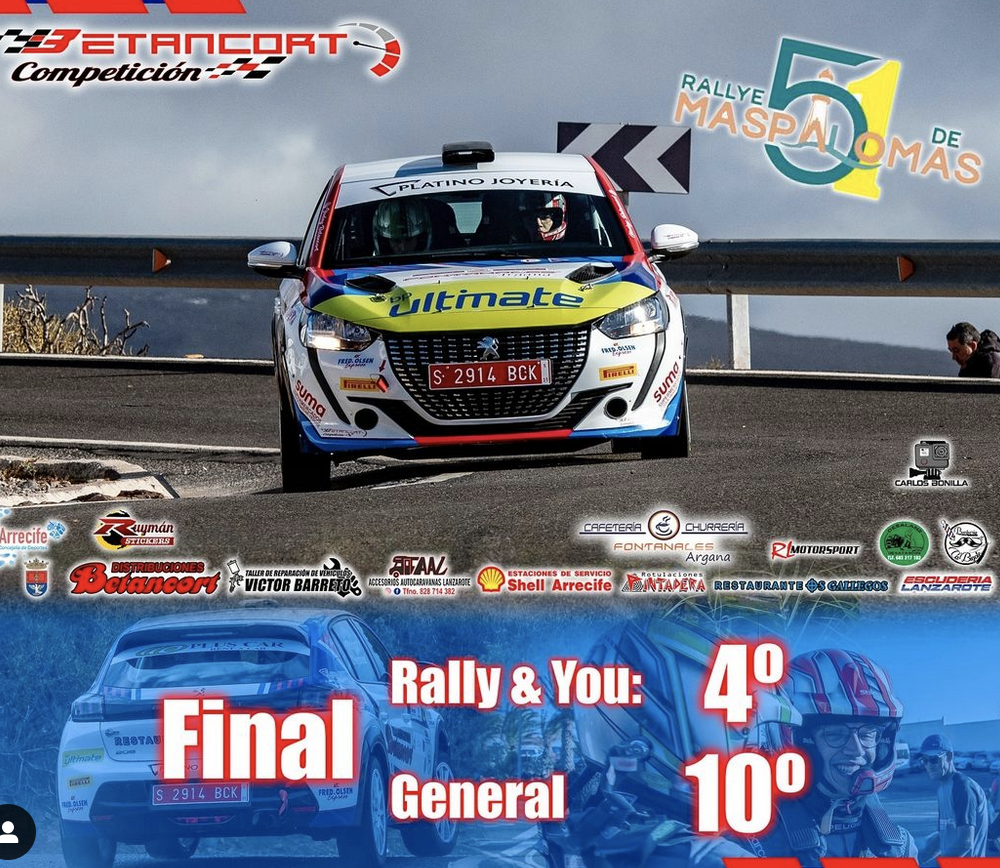 El lanzaroteño Yoday Betancort y el majorero Jonathan Hernández situaron a su Peugeot 208 Rally4 en la décima plaza de la general del Rally de Maspalomas, la cuarta de la Rally Cup y como primeros del Trofeo Promoción y Volante FALP.