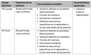– Detalles exteriores específicos RS en negro brillante, parrilla delantera con banda luminosa horizontal, llantas de 20 pulgadas y dos Design Selections de interior a elegir