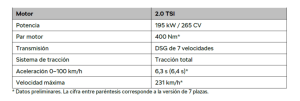 – El nuevo motor de gasolina 2.0 TSI EVO rinde 195 kW (265 CV) y siempre incorpora tracción total