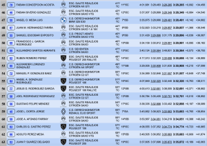 El palmero residente en La Gomera José Manuel González (Porsche 991 GT3) era sexto, no pudiendo optar al título regional, seguido de Ángel Nicolás Correa (Citroën DS3 WRX), séptimo, Walter Delgado (Suzuki Swift Rally2-Kit), octavo. El top 10 lo completaron Sergio Acosta (Seat León Supercopa), novenos, y Pedro Pérez (Mitsubishi Lancer Evo IX), décimo.