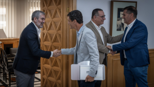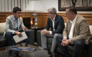 El presidente, acompañado por Poli Suárez, consejero de Educación, Formación Profesional, Actividad Física y Deportes, atendió al copiloto grancanario en la sede de Presidencia del Gobierno de Canarias en Las Palmas de Gran Canaria, departieron unos minutos, donde Peñate le entregaba de un recuerdo de su título mundial y le hacía participe de sus proyectos de cara a los próximos años.