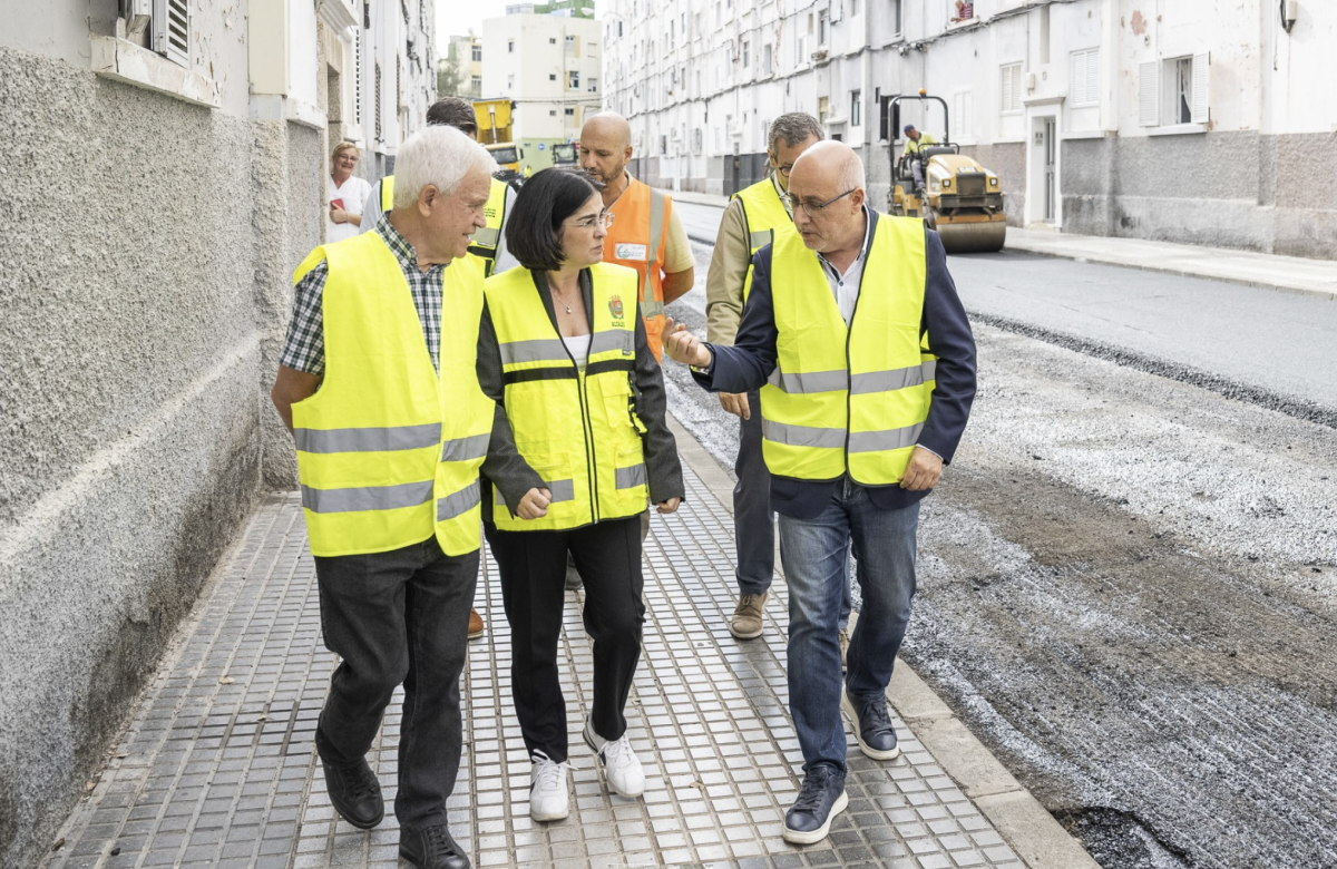 El presidente del Cabildo, Antonio Morales, y la alcaldesa, Carolina Darias, han visitado hoy los trabajos de repavimentación que se están desarrollando en Escaleritas, Triana, Vegueta, El Lasso y Casablanca I, que cuentan con una inversión de 1,24 millones de euros con cargo al Plan de Cooperación con Ayuntamientos de la entidad insular.