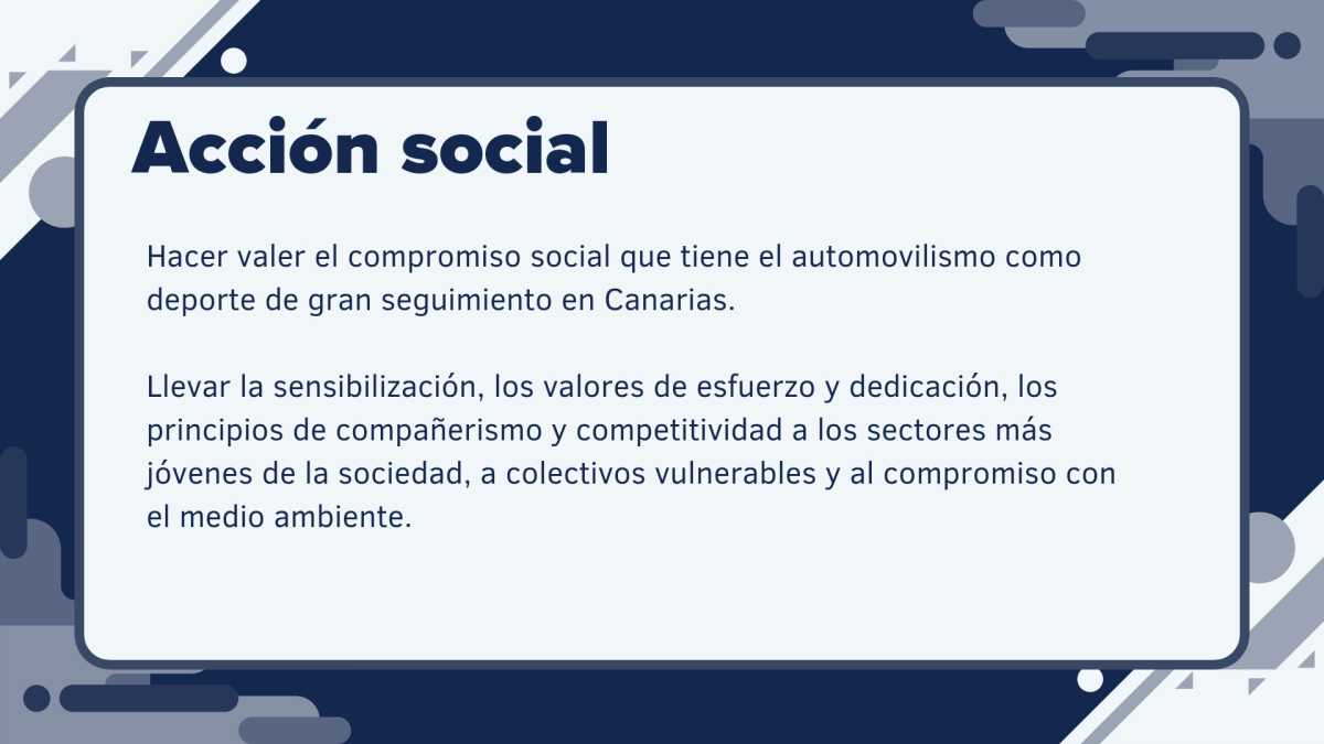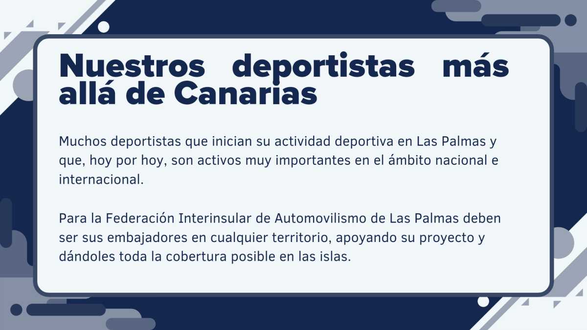 Añadiendo a todo lo anteriormente comentando, «el trabajo con las jóvenes promesas de nuestro deporte, la promoción también de aquellos que nos representan fuera de las Islas y, sin duda, la acción social que ha quedado aparcada durante años haciendo del automovilismo un departamento estanco sin relación con otras federaciones, colectivos, asociaciones juveniles, así como el trabajo con un programa tan actual como el de Mujer y Motor».