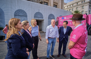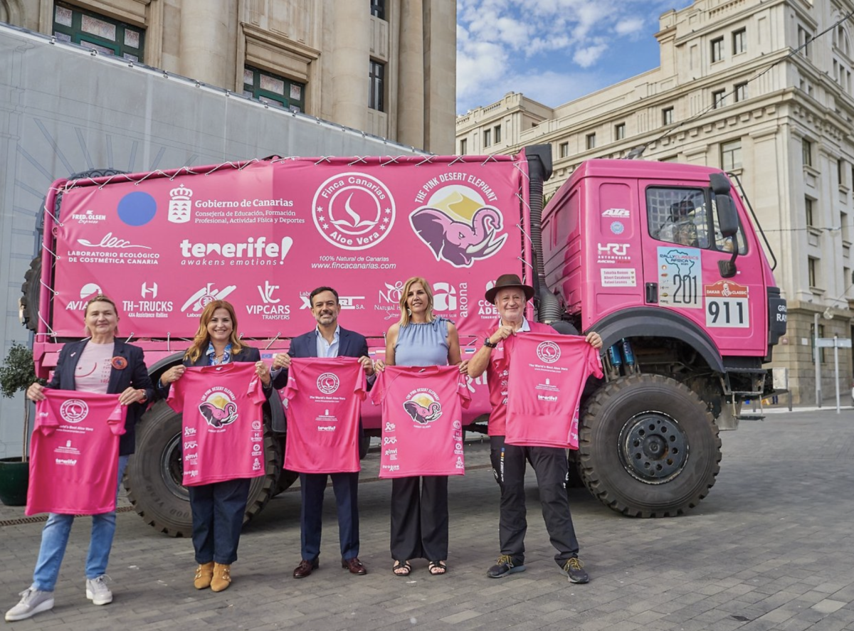 El camión pintado de rosa pilotado por el deportista canario Rafael Lesmes, que participará en el Dakar 2025 del 3 al 17 de enero, fue presentado esta mañana en la plaza del Cabildo durante el transcurso de un acto al que asistió el vicepresidente y consejero de Turismo del Cabildo, Lope Afonso; la consejera de Deportes, Yolanda Moliné; la consejera de Acción Social, Águeda Fumero; la presidenta de la Fundación Canaria Carrera por la Vida, Brigitte Gypen, y el consejero delegado de Ideco, Manuel Gómez.
