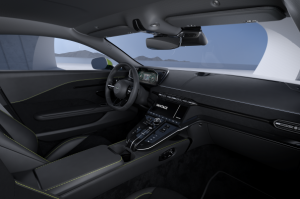 La exclusividad continúa dentro del coche con una placa en el umbral de las puertas con el logotipo Vantage AMV24, diseñado por Q by Aston Martin. Los bordados a juego en los reposacabezas, un “Jewellery Pack” en cromo oscuro y las costuras en contraste en AMR Lime en los asientos ventilados Black, ofrecen una experiencia interior que recuerda al Aston Martin Vantage GT3 de competición, que fue presentado junto al nuevo deportivo Vantage y al AMR24 de F1®en el famoso circuito de Silverstone en febrero de este año.