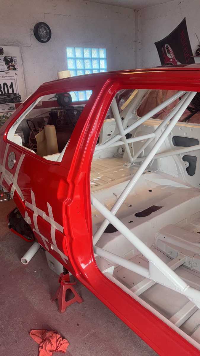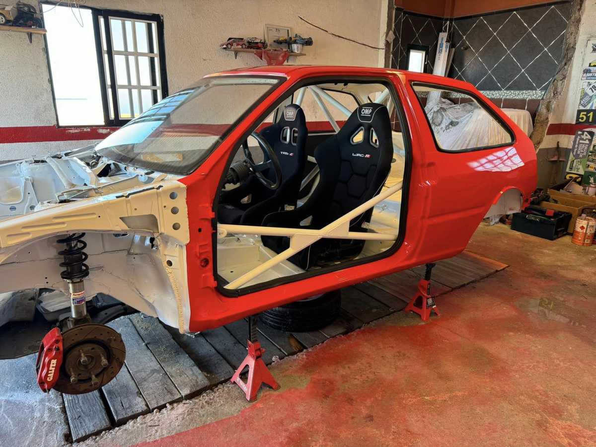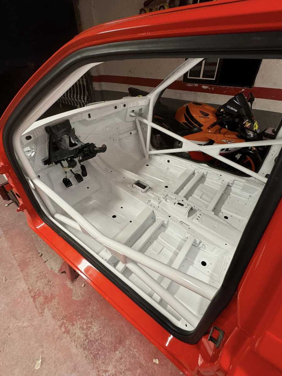 Este coche lo hemos desmantelado por completo, poniendo arco de seguridad actualizado, arenado de carrocería, refuerzos y todo pintado.