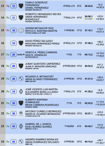 Sorpresa en la tercera plaza de la general con el dominio que vienen ostentando Alvaro Caballero-Noé González con el BMW M3, a 26,8 segundos del segundo escalón del podio y con sólo 4,7 de ventaja sobre sus perseguidores. Esos son los tenores de la «You Rally BP Ultimate Plus Car Cup», donde Javier Cañada-Aday Ortiz mandan con el Opel Corsa, siendo cuartos en la clasificación general, con sólo 8,2 segundos de ventaja sobre sus rivales directos, los grancanarios Nelson y Ayose Climent con el Peugeot 208 Rally4, quintos provisionales en la general del ROIL24.