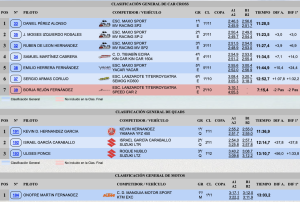 Terceros acabaron Gustavo Sosa y Miriam Antelo, que con su Hyundai i20 N Rally2 se quedaron a 23,4 de la cabeza, pero logrando superaren siete segundos Iriome Perdomo y Fran Cabrera (Subaru Impreza GC8), cuartos.