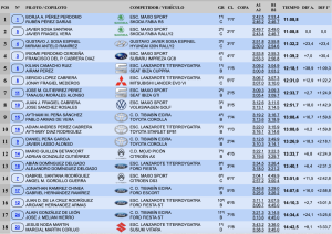 Terceros acabaron Gustavo Sosa y Miriam Antelo, que con su Hyundai i20 N Rally2 se quedaron a 23,4 de la cabeza, pero logrando superaren siete segundos Iriome Perdomo y Fran Cabrera (Subaru Impreza GC8), cuartos.