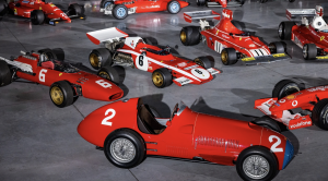 Los Ferrari incluyen el 375F1 con el que Ascari ganó el Gran Premio de Italia de 1951, el coche ganador del título de Hawthorn en 1958 y el bólido de Schumacher en 2002.