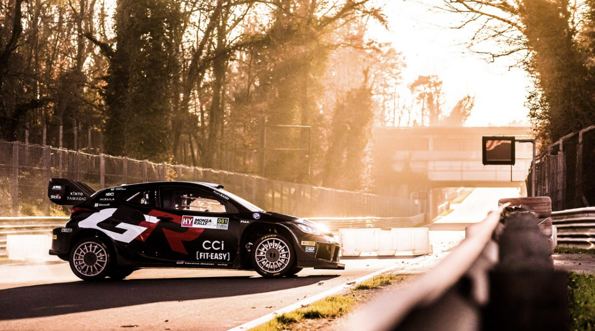 Sébastien Ogier, ocho veces campeón del mundo, y Jari-Matti Latvala, director del equipo Toyota, compartieron un GR Yaris Rally1 para hacer vibrar al público en el circuito más antiguo de Italia, y antigua sede de una prueba del campeonato del mundo.