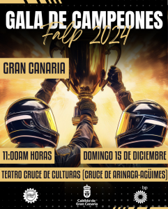 La Gala de Campeones FALP de la isla de Gran Canaria pondrá este domingo, 15 de diciembre, el broche a la temporada 2024. Después de la celebración de más de veinticinco pruebas en la capital oriental, los primeros clasificados de los diferentes campeonatos recibirán el reconocimiento de la Federación de Automovilismo de Las Palmas (FALP) en el Teatro Cruce de Culturas del municipio de la Villa de Agüimes a partir de las 11:00 horas.