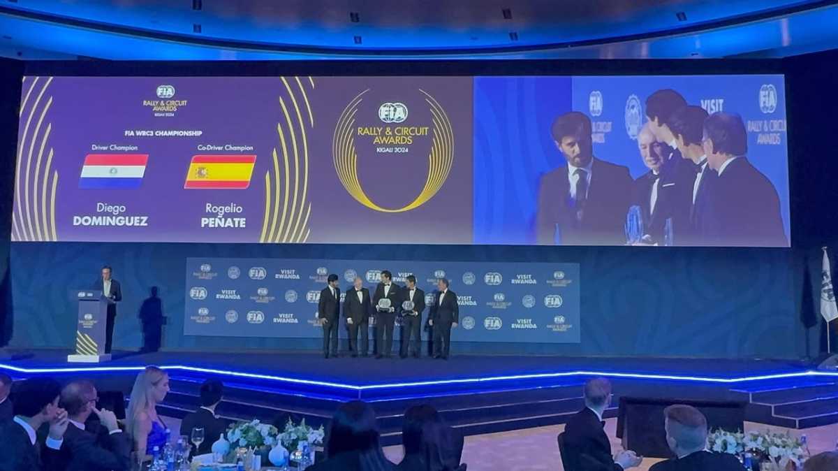 El piloto paraguayo Diego Domínguez y el grancanario Rogelio Peñate recogieron el título que les acredita como campeones del Mundo de Rallys dentro de la categoría WRC3.