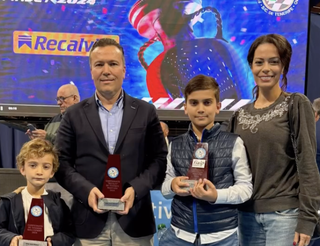 El piloto tinerfeño Ángel Bello Trujillo a los mandos del Audi R8 LMS Ultra Evo del equipo Ángel Bello Motorsport se ha llevado el título del Campeonato de Canarias de Montaña y el del Campeonato Provincial de Santa Cruz de Tenerife de Montaña, trofeo que recogía, junto a su familia, este pasado fin de semana. También le tocó el Rally Sprint de Tenerife con el Hyundai i20 R5. Un año redondo.