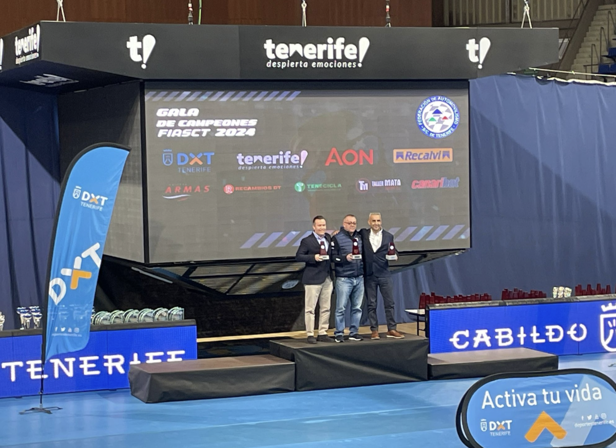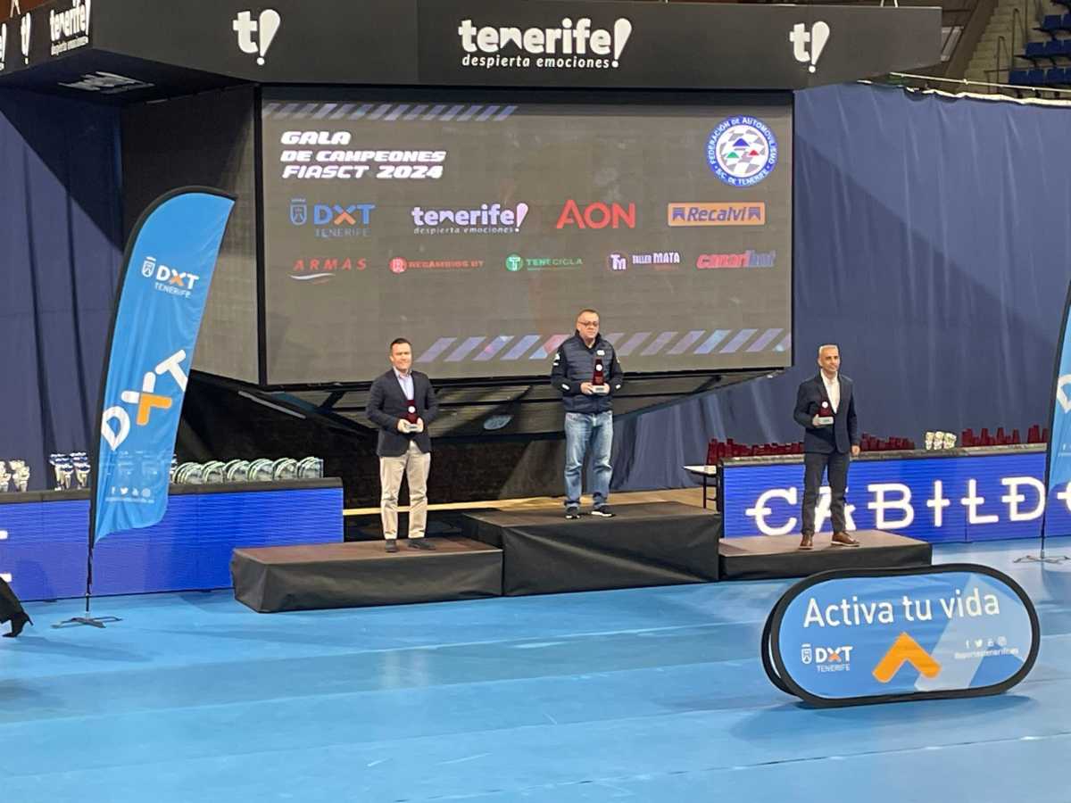 El piloto tinerfeño José Alberto Díaz (Porsche 911 997 GT3 Cup) recoge su trofeo como tercer clasificado del Campeonato Interinsular de Santa Cruz de Tenerife de Montaña, donde tuvo como grandes 0ponentes Ángel Bello Trujillo (Audi R8 LMS Ultra Evo), segundo, y Juan Carlos Brito (Ford Fiesta R5 Plus), el campeón.