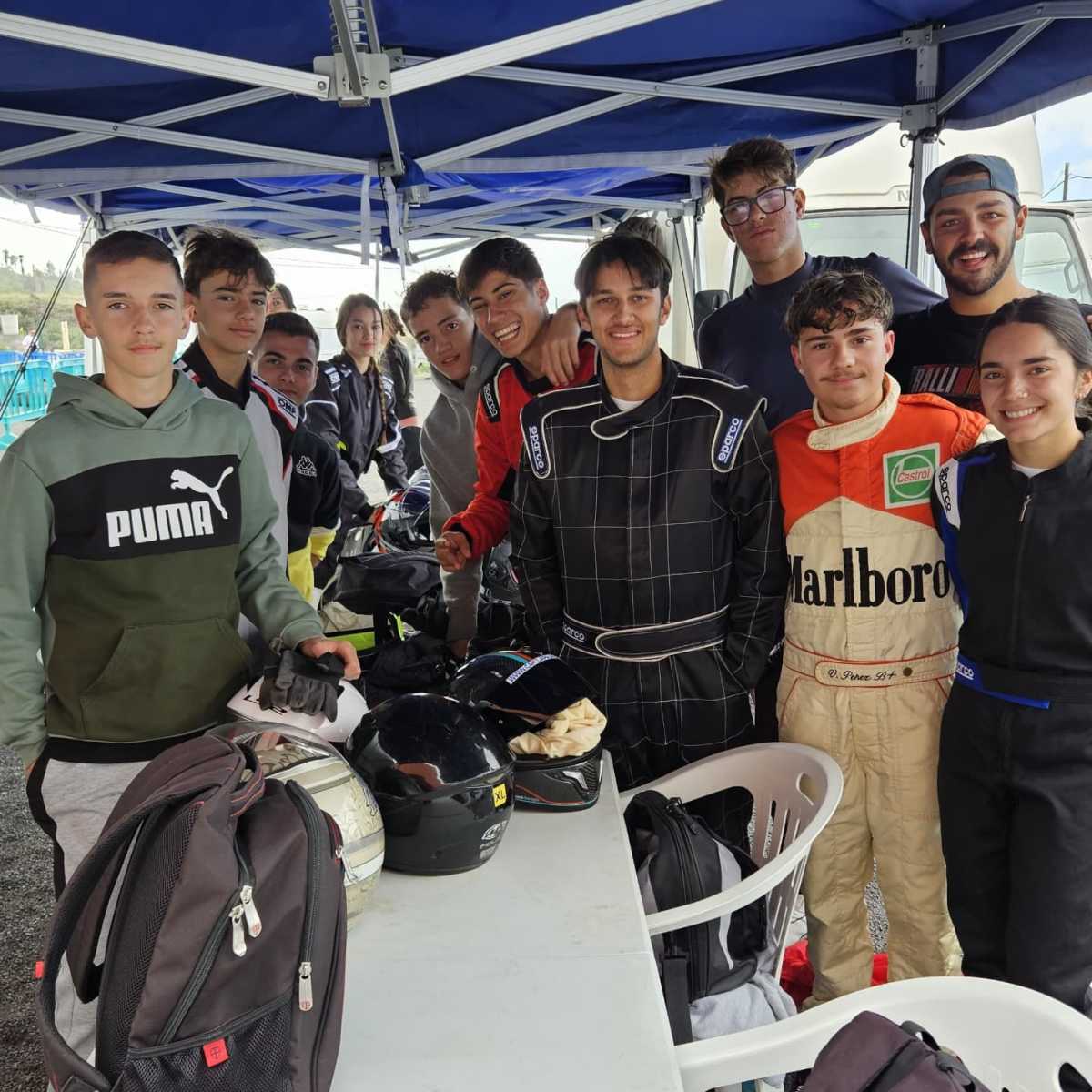 Fin de semana inolvidable: primero por las duras condiciones de climatología que tuvimos desde el viernes hasta el domingo, donde llovió y llovió, pero ni el frío, ni el viento, ni la lluvia detuvo a la única escuela de karting que existe en Canarias. Sí, así de cierto, y está en La Palma. Somos la afición número uno, el motorsport tiene algo especial.