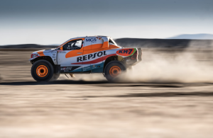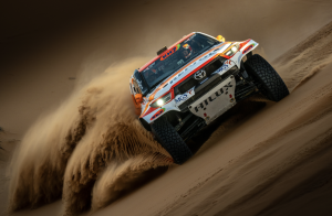 Al saltar una duna, el motor del Toyota Hilux se detuvo y, cuando Esteve intentó volver a arrancarlo, se dieron cuenta de que no iba a ser posible; el motor de arranque había dicho ‘basta’. Villalobos tuvo que bajarse para empujar cuesta abajo el vehículo con todas sus ganas, después de liberar de arena las ruedas delanteras, y Esteve logró arrancar en segunda marcha. Por delante: casi 100 km de máxima tensión, donde el 4×4 no podía volver a calarse. La pareja española gestionó a la perfección el reto, pero en la doble cresta de la última duna, sus peores temores se hicieron realidad y durante tres horas Villalobos tuvo que desmontar todos los bajos del coche, antes de idear un arreglo ingenioso para lograr acabar la etapa.