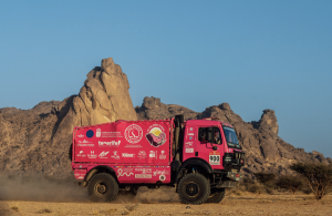 90 minutos tan solo son los que tiene el mecánico del equipo, Alberto Casanoba, con el apoyo de los mecánicos de TH-Trucks, para intentar arreglar el amortiguador suelto con el que han tenido que cubrir los últimos 200 kilómetros del enlace hasta llegar a su destino. Transcurrido ese tiempo el camión entrará en la zona conocida como ‘parque cerrado’, donde no podrá ser tocado hasta la salida. El principal problema es que en caso de sufrir una avería de importancia, no se podrá reparar durante 48 horas.