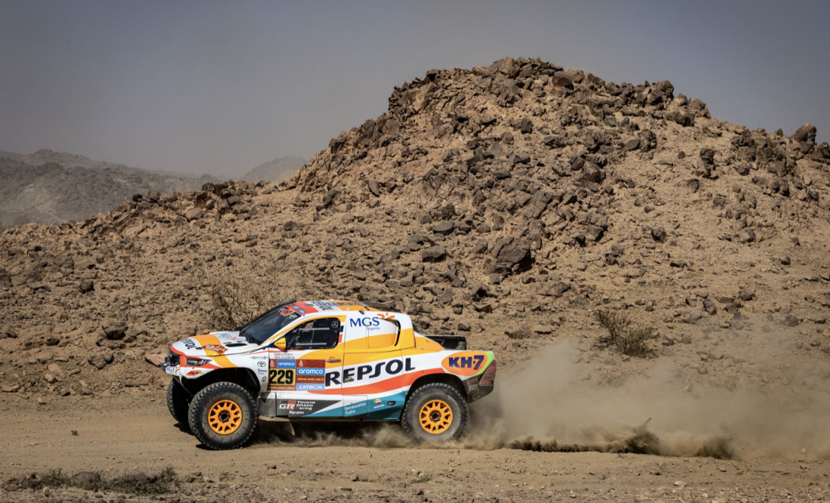 “Los 400 kilómetros y pico se me han hecho interminables; iba contando los que faltaban para acabar. Ha sido un día muy difícil para mí, durísimo. He vomitado dos veces y he tenido que encontrar un ritmo que me permitiera rodar y llegar hasta el final”, explica el piloto apoyado por Repsol, MGS Seguros y TOYOTA GAZOO Racing Spain.