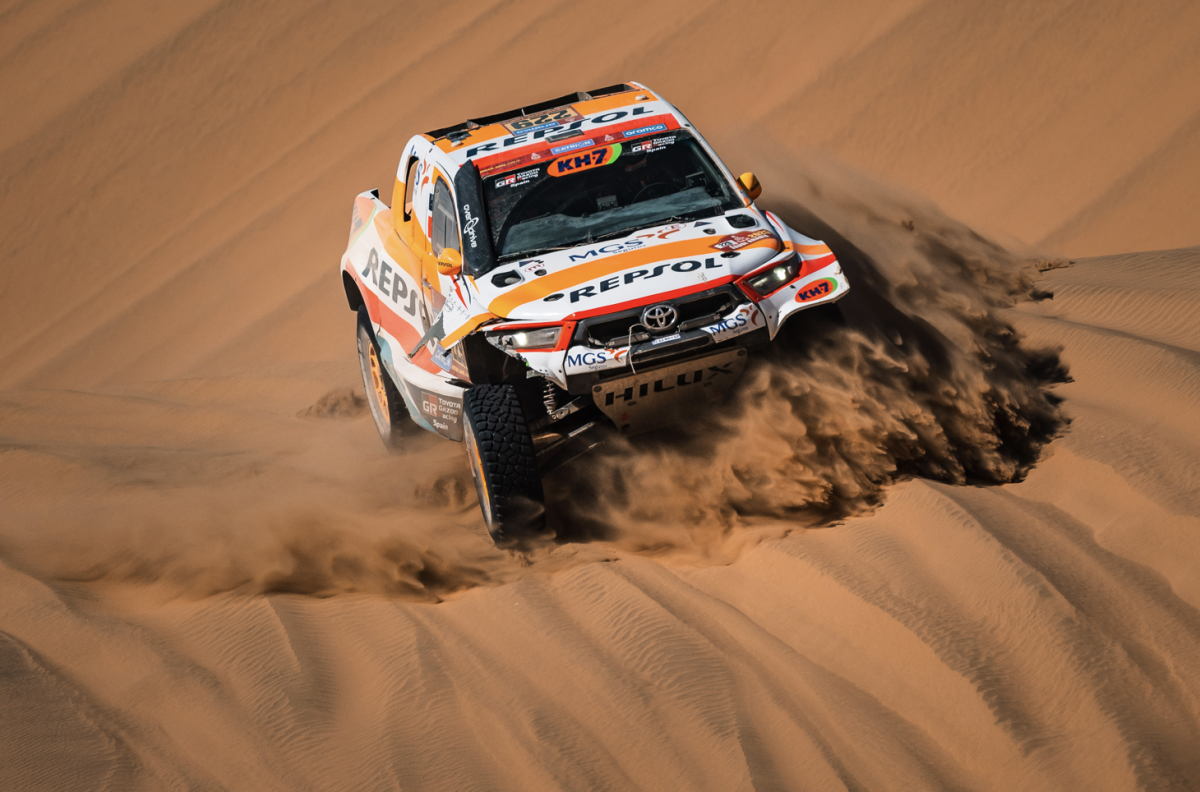 Este lunes, el Repsol Toyota Rally Team tiene otros 359 kilómetros cronometrados por delante para completar la crono de 48 horas, de vuelta a Bisha. Sobre un terreno similar, con pistas y dunas rotas, Isidre Esteve confía en seguir recuperando el tono competitivo.