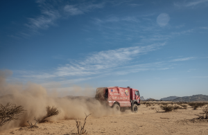 Rafa Lesmes dio como cada día desde el vivac a su llegada al campamento su parte de la carrera: «Hoy cubrimos unos 300 kilómetros del sector selectivo y ptrps 150 kilómetros adicionales de enlace por la mañana, que fueron más llevaderos porque te cogen descansado después de levantarte. La especial fue dura, exigente, larga, tiene mil trampas, pero es el día a día del Dakar. Salimos con mucha precaución por el susto que nos llevamos ayer con el tema de los amortiguadores, pero al final, estuvimos revisando en las pequeñas paradas que tenemos antes de las especiales y todo parecía estar bien, así que poco a poco fuimos incrementando el ritmo, pero sin abandonar ese estado de cautela, porque no podíamos mantener ese ritmo rompedor de ayer porque al final terminamos o rompiendo el camión o rompiéndonos nosotros. Hoy hemos optado por asumir algo menos de riesgos e ir a asegurar y al final más allá de la dureza y lo larga que fue la etapa llegamos a meta sin ningún incidente serio, más allá de un par de pérdidas por un par de errores que me suceden a mí, pero también a los demás. Tuvimos una buena navegación, mantuvimos una buena regularidad, con muchos cambios de ritmo, diferentes suelos, con muchísima arena, en caminos secos con algo de piedras, en una etapa dakariana como las que esperamos».