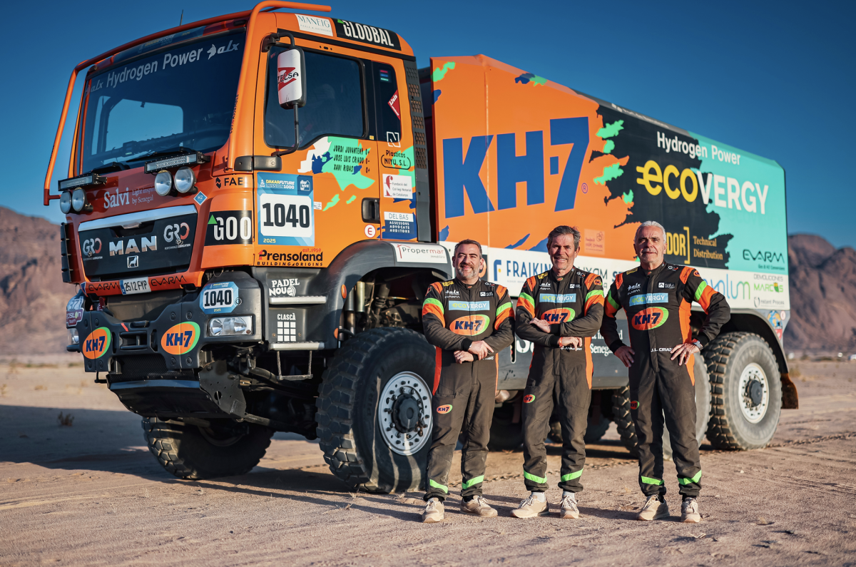 Por lo demás, el KH-7 ECOVERGY Team sigue adelante con una fiabilidad impecable. El sistema híbrido de alimentación de Hidrógeno / HVO (aceite vegetal hidrotratado) está funcionando a la perfección, y las únicas dificultades a las que el equipo tiene que hacer frente son las propias de una carrera tan dura y exigente como el Dakar. Con el ingeniero Xavi Ribas controlando el buen funcionamiento del sistema mixto desde la cabina del emblemático camión naranja, Juvanteny y Criado (33 y 34 ediciones del Dakar a sus espaldas, respectivamente, 31 de las cuales formando equipo) pueden centrarse en competir como saben, sin pensar en que están siendo los pioneros de la tecnología de futuro del Dakar.