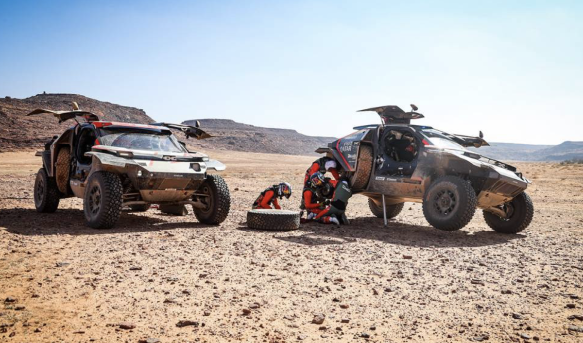 Al-Attiyah y Boulanger pincharon y tuvieron que detenerse a cambiar el neumático