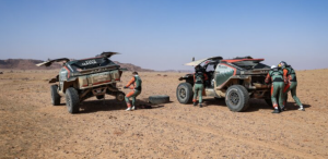 Nasser Al Attiyah, que ha tenido hoy problemas sobre la pista, concluye la especial a 33’27’’ del líder provisional Yazeed Al Rajhi. Tras situarse a más de tres cuartos de hora en el kilómetro 151, el piloto de Dacia ha logrado recuperar casi 12’.