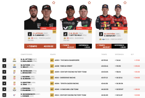 En la general, Lategan aumenta su renta sobre Yazeed Al Rajhi, que le sigue a 5’41». Mattias Ekström, penalizado por su condición de abridor, conserva el tercer puesto pero recula hasta los 28’55» de Lategan. Nasser Al Attiyah, por su parte, pierde terreno y se sitúa a 34’14».