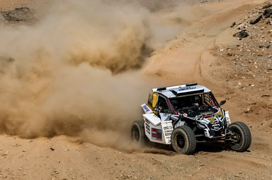 La especial, “100% dakariana”, en palabras del piloto del equipo BBR, ha tenido un poco de todo, entre pistas rápidas, arena, piedra y una pequeña parte final de dunas. Por fortuna para ellos, en esta ocasión, y a pesar de lo larga que ha sido la etapa, no han tenido que bajarse del vehículo para socorrer a ningún piloto de los equipos Red Bull Off-Road Junior Team y Team BBR, a los que asisten. Esto les ha permitido llevar un ritmo mucho más acorde a las prestaciones de su Can-Am Maverick X3 que, conviene recordar, carga con dos cajas, una anclada en cada lateral, con cerca de 200 kilos adicionales en piezas de recambio.