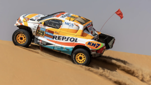Isidre Esteve ha tenido una ardua primera toma de contacto con las dunas, el terreno puramente dakariano de las tres últimas jornadas de esta 47ª edición. Este miércoles, el piloto catalán y su copiloto Txema Villalobos han perdido unos minutos preciosos en la antepenúltima etapa por un problema electrónico, resuelto tras hacer un reset general en plena especial. A pesar de ello, el Toyota Hilux T1+ con los colores de Repsol, MGS Seguros y TOYOTA GAZOO Racing Spain se mantiene 35º en la clasificación absoluta, 23º en la categoría Ultimate.