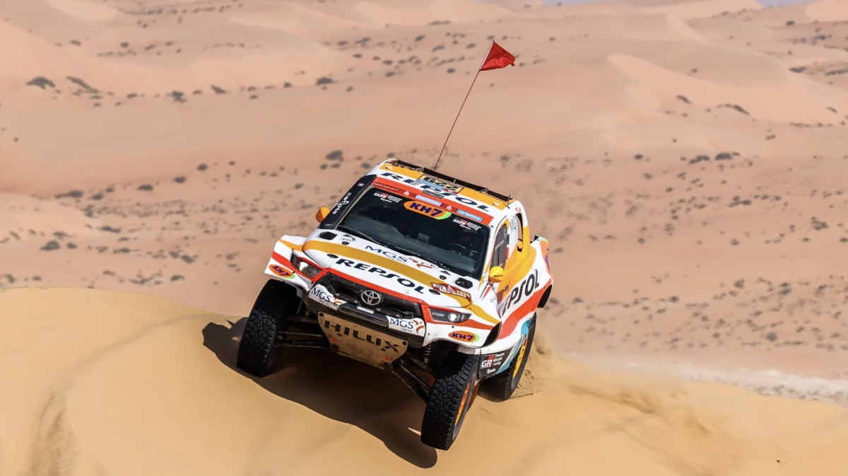 A pesar de que la primera especial íntegramente sobre dunas de este Dakar era la más corta hasta ahora, con 120 kilómetros cronometrados, la jornada ha sido maratoniana para los equipos. El Toyota Hilux T1+ número 229 se ha puesto en marcha a las 5:20 de la madrugada, para recorrer un larguísimo enlace de 520 kilómetros, desde Haradh hasta el campamento de Shubaytah, donde la caravana permanecerá hasta el final de esta edición, el próximo viernes. Shubaytah es la puerta de acceso al Empty Quarter (lugar vacío), el inmenso mar de dunas escenario de las tres últimas etapas.