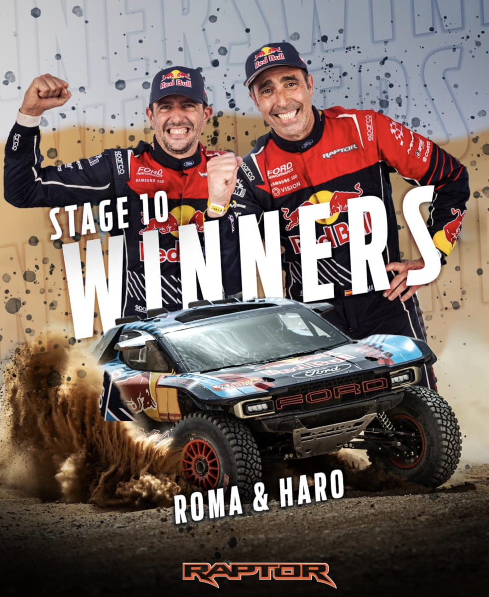 También queremos felicitar a M-Sport por su primera victoria en la etapa general en Dakar con el nuevo Raptor. ¡Un gran logro para el equipo y para Ford Performance por volver a la forma ganadora del escenario en el Dakar!