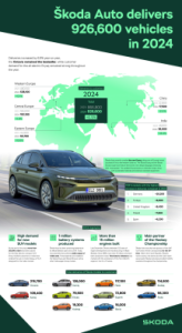Martin Jahn, miembro del Comité Ejecutivo responsable de Ventas y Marketing de Škoda Auto, afirmó: «En 2024, registramos un crecimiento interanual del 6,9% en las entregas globales, en gran parte gracias a nuestra cartera ampliada y actualizada. Nuestros resultados han sido especialmente buenos en nuestros mercados clave de Europa Occidental y Oriental. En cuanto a nuestra gama de modelos, el Octavia actualizado y la nueva generación del Superb y el Kodiaq registraron notables aumentos. La familia Enyaq, totalmente eléctrica, continuó su exitosa trayectoria también en 2024, con casi 80.000 entregas en todo el mundo y ocupando los primeros puestos en matriculaciones de vehículos eléctricos en varios mercados europeos. Además, a finales de año se habían realizado más de 20.000 pedidos de nuestro nuevo SUV compacto eléctrico Elroq. En términos de optimización de la experiencia del cliente, trabajamos intensamente en la mejora de la aplicación MyŠkoda y en la expansión de nuestros servicios digitales como Pay to Park y Pay to Fuel. El despliegue de nuestra actualización global de las salas de exposición continuó, destacando nuestra nueva identidad corporativa en más de 230 concesionarios hasta la fecha».