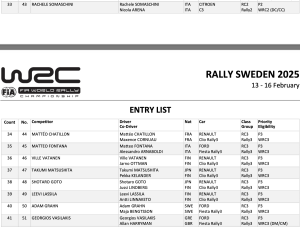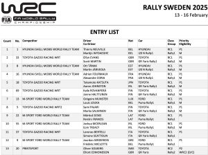 La lista de inscritos del Rallye de Suecia, segunda prueba del Campeonato del Mundo de Rallyes de la FIA de este año, cuenta con 12 coches en la categoría Rallye1.