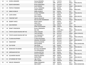 El campeón de WRC2 de 2017, Pontus Tidemand, que disfrutó de varias salidas de alto nivel con M-Sport en 2019, regresa al campeonato después de casi cinco años de ausencia en un Škoda Fabia RS Rally2. Otros pilotos a seguir en la categoría reina de apoyo incluyen a Lauri Joona, Robert Virves, Fau Zaldivar y Mikko Heikkilä, así como estrellas en ascenso como Roope Korhonen y Romet Jürgenson.