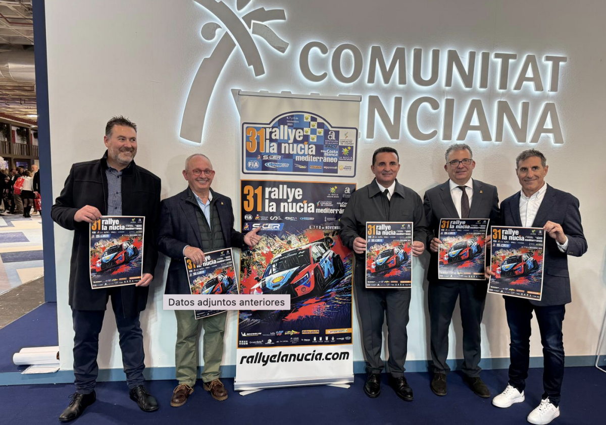 El 31 Rallye La Nucía Mediterráneo ‘Trofeo Costa Blanca’ ha anunciado su celebración en la Feria Internacional de Turismo (FITUR). Será los días 6, 7 y 8 de noviembre, con sede en La Nucía y un recorrido que se dará a conocer en las semanas previas a la disputa de la prueba. Transcurrirá por una treintena de municipios del interior de la provincia de Alicante. La Plaza Central de FITUR ha servido de escenario para presentar esta cita del calendario de Supercampeonato de España de Rallyes (S-CER) y que lo es también puntuable para el International Iberian Rally Trophy y para el Certamen Autonómico. En el acto de presentación participó el vicepresidente de la Federación Española de Automovilismo (RFEDA), José Vicente Medina, el alcalde de la localidad anfitriona, Bernabé Cano.