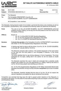 Se celebró una audiencia telefónica con el conductor del vehículo nº 20, Sr. OLIVER SOLBERG, el domingo 26 de enero de 2025 a las 19.30 hrs.