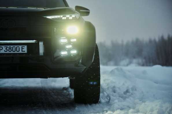 El prototipo basado en el Audi Q6 e-tron deja entrever cómo podría ser un posible vehículo de propulsión eléctrica para el segmento de los todoterreno. Un aumento de la altura libre al suelo de 160 mm y las vías ensanchadas en 250 mm contribuyen a su espectacular apariencia.