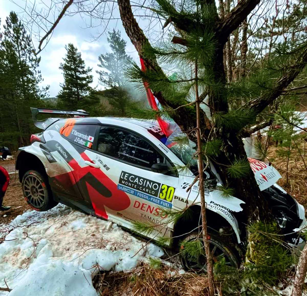 El joven piloto japonés Yuki Yamamoto corrió el Rallye Monte-Carlo 2025 a los mandos de un Toyota GR Yaris Rally2. Junto al copiloto James Fulton rodaban en la décimo quinta plaza entre las monturas Rally2, hasta que una fuerte salida de carretera empotró su montura contra un árbol
