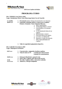 El curso se desarrollará en dos jornadas, la primera deellas, con contenidos teóricos, tendrá su epicentro en las instalaciones de Motor Arisa en el Mayorazgo en Santa Cruz de Tenerife, donde se abordarán los contenidos teóricos básicos que un navegante debe dominar, (interpretación reglamentos, uso del carnet de ruta, diseño notas, novedades con las homologaciones de seguridad,…). Cabe señalar que el horario de esta jornada teórica, comenzará a las 16.00 horas y concluirá a las 20,00 horas del citado viernes 16 de febrero de 2024.