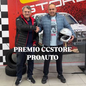 El piloto grancanario Benedicto Domínguez recibió el trofeo que la acredita como ganador de la Copa ProAuto junto a su copiloto Nisamar Moreno en su Volkswagen Golf GTI.