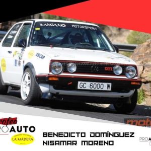 El piloto grancanario Benedicto Domínguez recibió el trofeo que la acredita como ganador de la Copa ProAuto junto a su copiloto Nisamar Moreno en su Volkswagen Golf GTI.